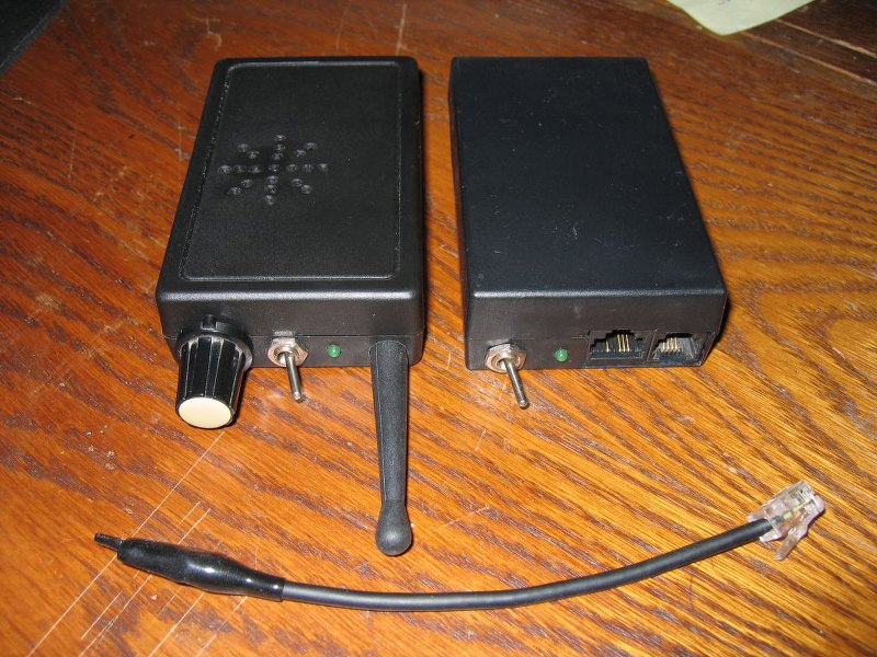 Zvučnika visoke impedancije od 220R, koji se može naći u telefonskim slušalicama. Zbog prevelikih dimenzija zamijenio sam ga s manjim impedancije 110R koji je izvađen iz starog Panasonic bežičnog telefona. Pokazalo se da radi jednako dobro kao i prvi.